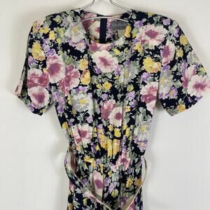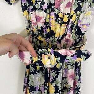 Vintage Carol Anderson Floral Long Dress Lightly Padded with Belt Size 4