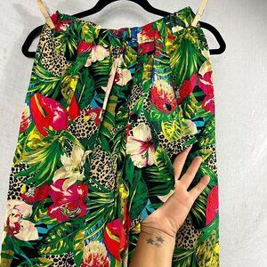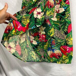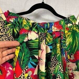Vintage Carol Anderson Tropical Wrap Midi Skirt Womens M Ruffle Pull On Hawaii
