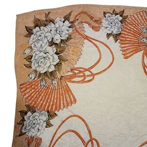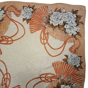 Elegant vintage Carol Stanley scarf featuring a floral and fan design. Perfect for adding a touch of style.
