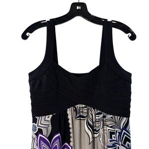 Vintage Carole Little Black & Purple Floral Print Maxi Dress With Empire Waist