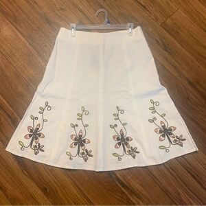Vintage Carole Little Embroidered Linen A-Line Flared Skirt S8 NWT