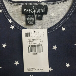 NWT, Vintage Carole Little Sport, Miss Firecracker Star Shirt, Size Medium, Blue with White Stars