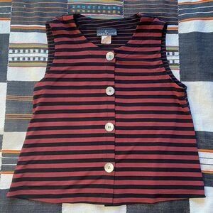 Vintage Carole Little Striped Sleeveless Button Up. Abalone Buttons. Small. Rare