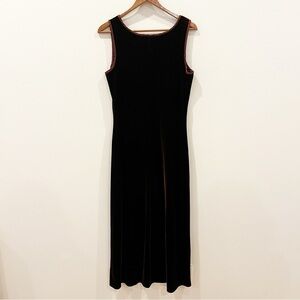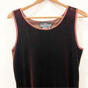 Vintage Carole Little Velvet Maxi Dress 6 Small Brown Elegant Sleeveless Sheath