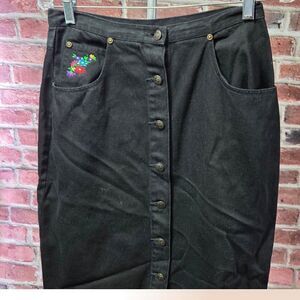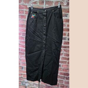 Vintage Carole Little Sport Black Denim Maxi Skirt – Women’s Size 8 Button Front