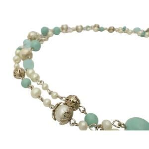 Vintage Carolee Aqua & Pearl Beaded Necklace | Ocean Hues with Silver Tone