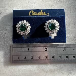 Vintage Carolee Art Deco Style Rhinestone Emerald Clip On Earrings