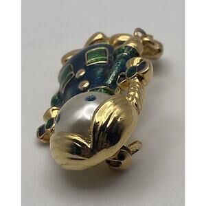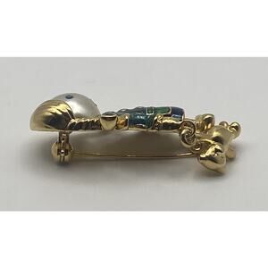 Vintage Carolee Enamel Girl Pig Tails Dangling Bear Gold Tone Costume Brooch
