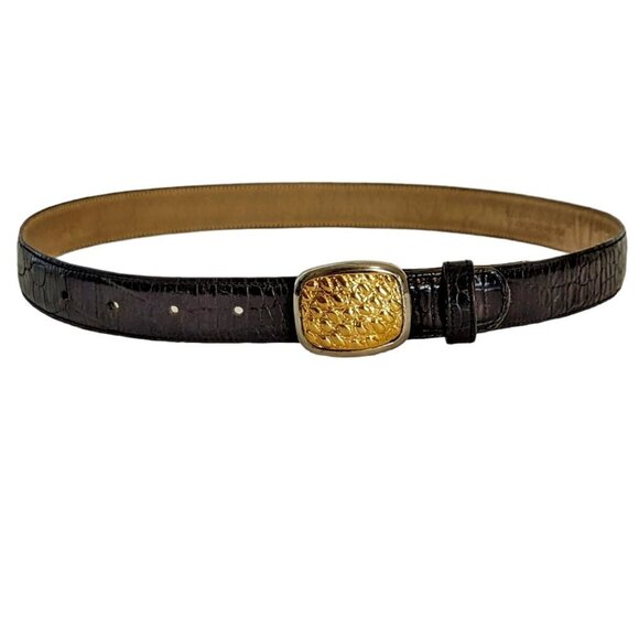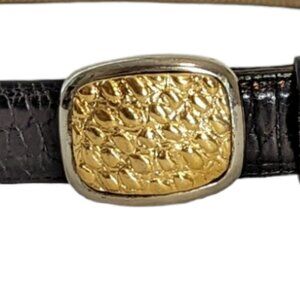 Vintage Carolee Leather Belt Gold Silver Tone Buckle Croc Metal Jeweled