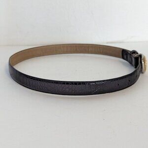 Vintage Carolee Leather Belt Gold Silver Tone Jeweled Buckle Croc Reptile Embossed Design
