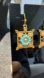 Vintage Carolee Square Gold Tone Turquoise Rhinestone Amber Beaded Earrings