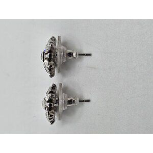 Vintage Carolee Starburst Pierced Earrings Silver Tone Clear Rhinestones