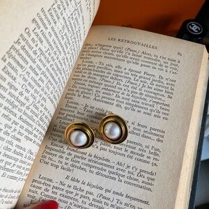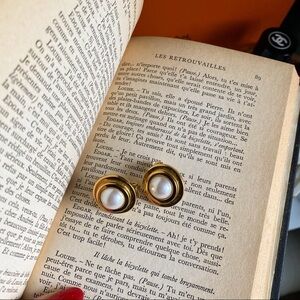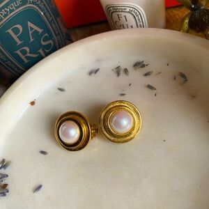 Vintage Carolee clip on gold tone and faux pearls earrings