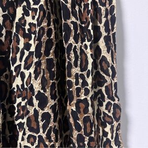 Vintage 90s button front crepe tan/beige cheetah print midi skirt with stretch waist and belt loops. Lightweight and flowy, unlined.