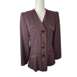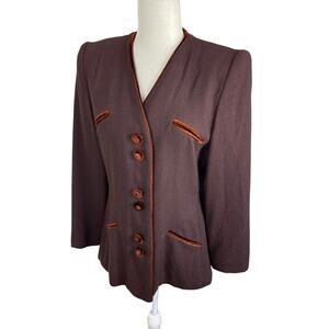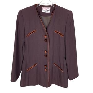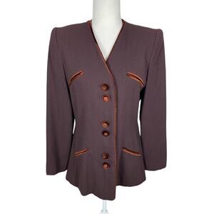 Vintage Carolina Herrera Studio Wool Velvet Trim Button Front Blazer Brown Sz 8
