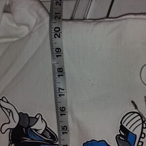 it is in pre-owned condition it is vintage it has some cracking on the bottom where it says Panthers and some cracking and the characters I try to show as best I could in pictures it as one spot on the cuff of sleeve as always have a wonderful day and any questions please ask T54 I really don't know if it women's or mens I did provide measurements