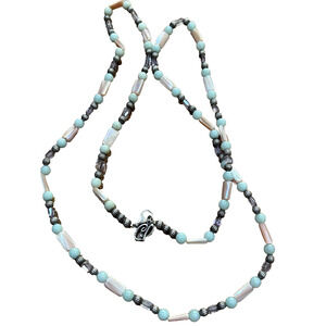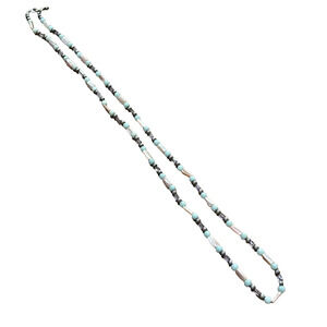 This Vintage Carolyn Pollack beaded necklace features a single strand of pastel stones with silver beads. The necklace has a lobster closure and a length of 35 inches, making it a versatile statement piece for women. Handmade in the United States, this unique necklace showcases an abstract Southwestern theme with pastel stones and silvertone metal chain and spacer beads. Perfect for adding a touch of vintage charm to any outfit, this necklace is a timeless accessory for those who appreciate fine jewelry with a touch of history. In good vintage condition - logo at the clasp - no other hallmarks apparent - so pretty and ready to wear!