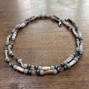 Vintage Carolyn Pollack Beaded Necklace Single Strand Pastel Stones Silver Beads