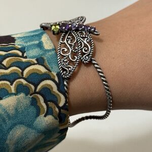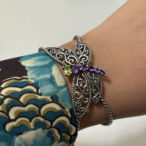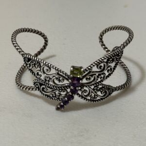 Vintage Carolyn Pollack Dragonfly Amethyst & Peridot Sterling Cuff Bracelet