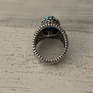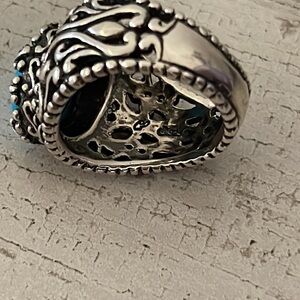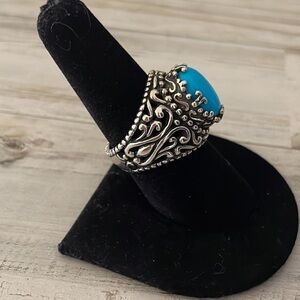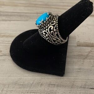 Carolyn Pollack Silver Ring with Oval shaped Turquoise Stone. The band is beautiful. See pictures for detailing. In excellent condition. Size 8.