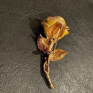 Vintage Carolyn Rafaelian enamel yellow rose pin
