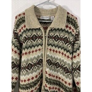 Vintage Carolyn Taylor Fair Isle Zip Up Sweater Womens M Cardigan Wool Blend