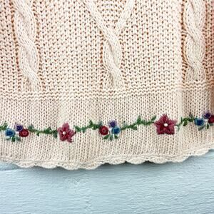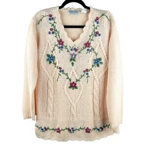 Keywords: vintage embroidered sweater, Carolyn Taylor knitwear, cottagecore fashion, soft pastel knit top, grandmillennial aesthetic, romantic feminine sweater, pearl embellished pullover, retro floral embroidery, timeless 90s knitwear, grandma sweater, grandmacore, cottage sweater
