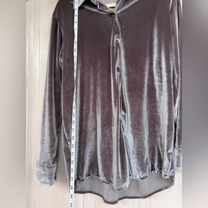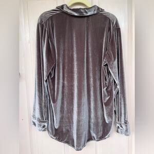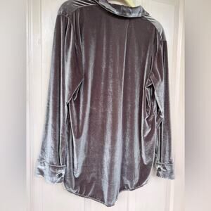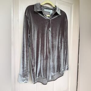 Vintage Carolyn Taylor Velour Button-Up Shirt M Brown Long Sleeve Shiny Blouse