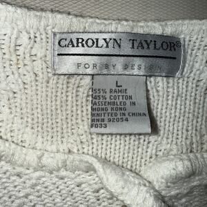 This is a beautiful vintage Carolyn Taylor white sweater in size large. It's in great condition and ready to wear. The classic design and comfortable fit make it a perfect addition to any wardrobe.