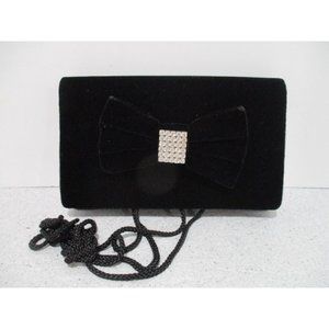 *Vintage Carolyne Barton Black Velvet Rhinestone Bow Evening Wristlet Clutch Bag
