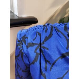 Vintage Caron Chicago Sheath Dress Womens S Blue Patterned Cowl Neck Tie Waist Back Zip
