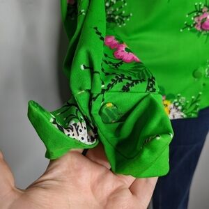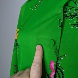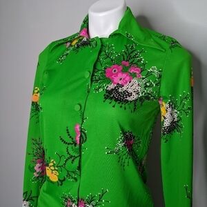 Vintage Caron green floral button up M. Small stain and snag on the upper front (see photo). No size or material tags, please see measurements.