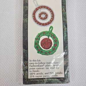 Vintage Caron Christmas Wreath Ornaments Needlepoint Kit 2 Pack 3" Diameter