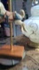 Charming vintage art featuring a carousel rabbit. Brass pole with a wooden base. Perfect for adding a whimsical touch to any room. swivel stand not included.