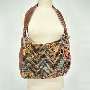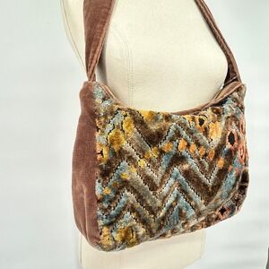Vintage Carpetbags America Hobo Shoulder Bag Velvet Chevron Hippie Boho Purse