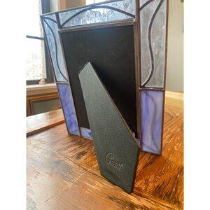 This exquisite vintage Carr stained glass photo frame captures timeless elegance with its blue and clear glass panels, complemented by a silver tone finish.
