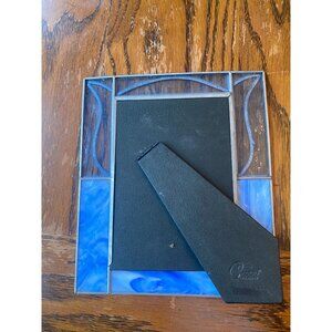 Vintage Carr Stained Glass Photo Frame With Blue & Clear Panels 8x10 Inches Silv