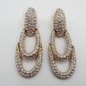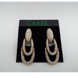 Vintage Carre Dangling Rhinestone Pierced Earrings