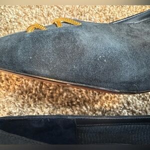 Vintage Carriage Court blue suede kitten heels with gold chain detail 9.5