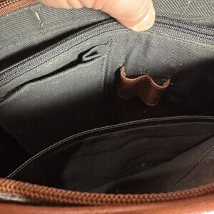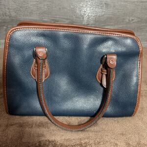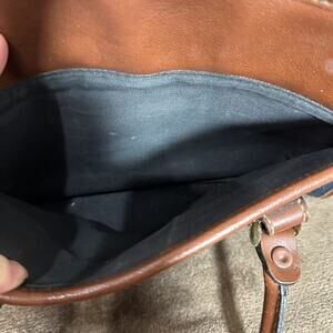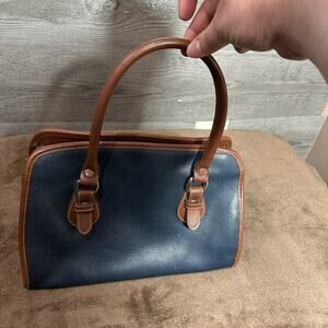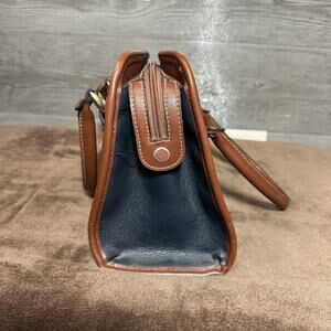 Vintage Carriage House Leather Purse Handbag Tan & Navy Many Pockets