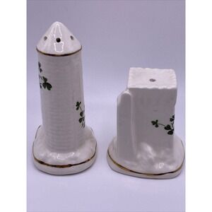 Vintage Carrigaline Pottery Irleand Shamrock Castle Salt & Pepper Shaker Set
