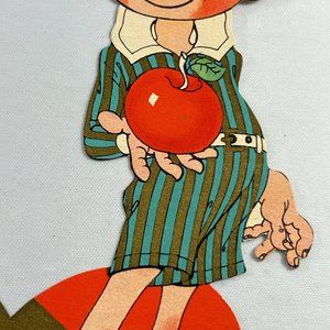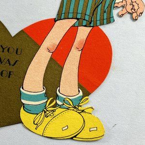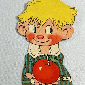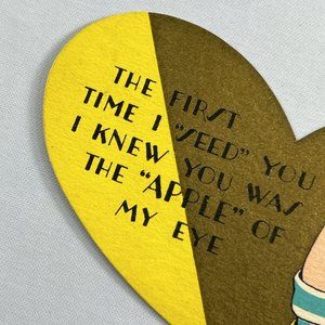 Vintage Carrington Company Valentines Card Lanky Boy Big Ears Apple Heart Ephemera. Writing on back and edge wear. Measures 8.5" X 5".