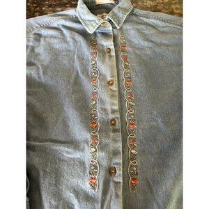 Vintage Carroll Reed Embroidered Denim Shirt Long Sleeve Size 10 100% Cotton