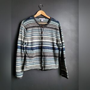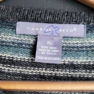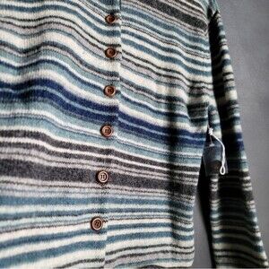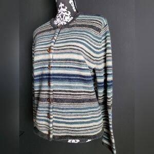 Vintage Carroll Reed Striped Blue Gray Wool Button Down Sweater Cardigan NWOT