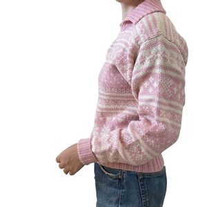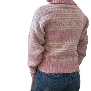 Vintage Carroll Reed Wool Pink Snowflake Valentines Day Collared Chunky Sweater