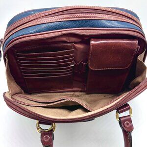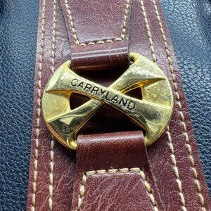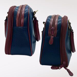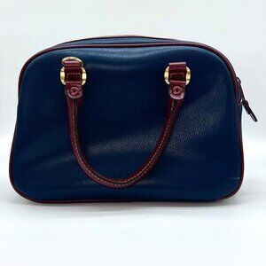 Vintage Carryland Satchel Bag Navy Burgundy Faux Leather Structured Handbag
