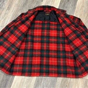 Vintage Carss Mackinaw red plaid button down 100% wool jacket