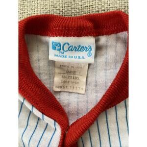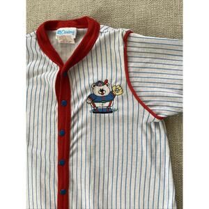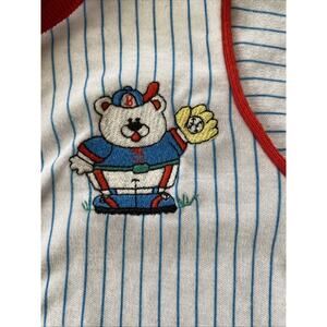 Vintage Carters 9mths Baseball Bear Striped One Pieces Outfit L USA 18/23 lbs