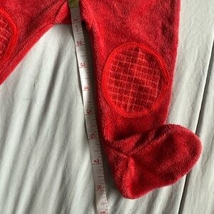 Vibrant red overalls with soft texture. Ideal for a playful outfit.
