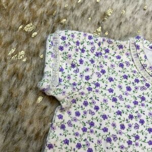 Add timeless charm to your little one’s wardrobe with this Vintage Carter's Classics Lace Trim Purple Floral White Bodysuit, designed for baby girls size 6-9 months. Featuring a delicate allover purple floral print on a crisp white background, this sweet bodysuit is finished with elegant lace trim at the collar and sleeves for a vintage-inspired look. Made from soft, breathable fabric with convenient bottom snap closures, it’s as practical as it is adorable. Perfect for special occasions or everyday vintage flair.